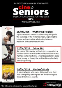 Wednesdays at 11.30am for those over 60’s at just £4.50 a ticket, you can see the film of the week and hot drinks and biscuits at Cineworld Basildon! Head in or book or book online.